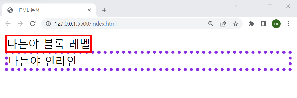 display: inline ---> 블록 레벨인 div를 display를 사용해 인라인으로 바꿈