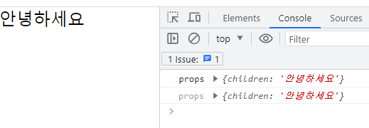 return <User>안녕하세요</User>; // 1. 열고 닫는 태그를 사용해서 정보를 자식 컴포넌트에 전달해주면