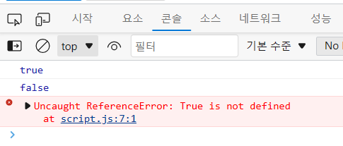 true, false 데이터는 모두 소문자를 사용해야한다.