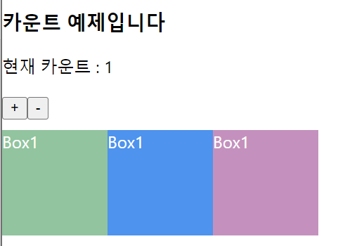 > plus 버튼 또는 minus 버튼을 누른 순간 Box1,2,3의 컴포넌트도 다같이 리렌더링이 되는 걸 알 수 있고,