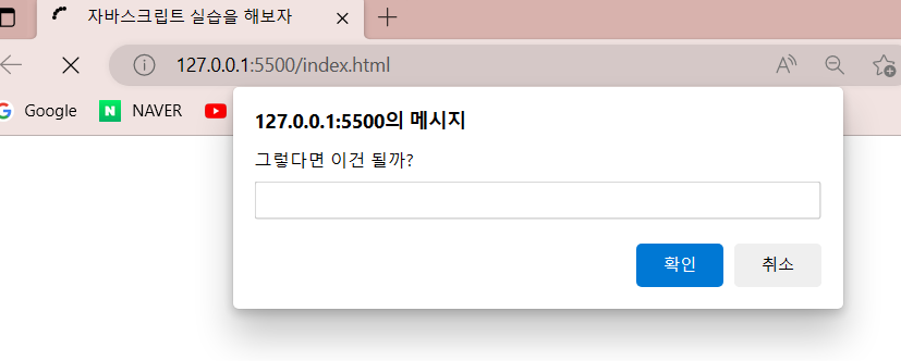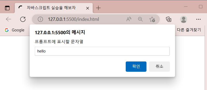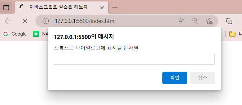 window.prompt("프롬프트 다이얼로그에 표시될 문자열")