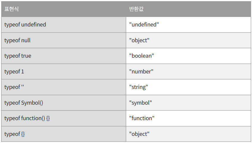 사용하고 있는 데이터의 type이 무엇인지 확인해서 반환해줌(오류는 제외) typeof 연산자는 타입을 확인해야 하는 피연산자 앞에 위치합니다. typeof는 연산자이므로 함수처럼 괄호[()]를 사용할 필요가 없습니다. 즉 피연산자의 타입을 확인할 때는 typeof(operand)가 아니라 typeof operand를 사용하는 것이 맞습니다. typeof(operand)도 사용 가능한 문법이지만, 불필요한 괄호[()]를 넣은 사용방법이니 추천드리지는 않습니다.