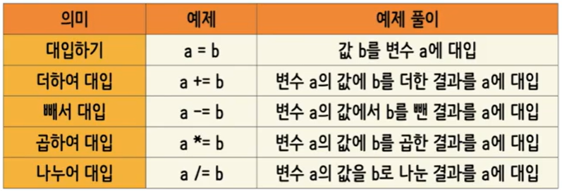 - 대입 연산은 오른쪽 피연산자의 데이터를 왼쪽 피연산자에 대입한다.