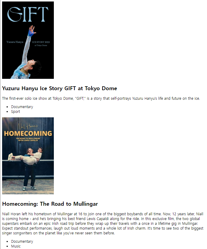 image, title, summary, genres가 UI에 제대로 출력된다.