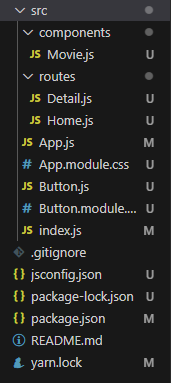 > url / 에서 Home.js를 사용하고, /movie일때는 Detail.js를 사용해야하니까 App.js에 Home.js와 Detail.js를 import해온다.