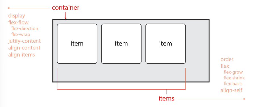- flex container: flexbox 방식으로 layout를 결정하는 요소로 기본적으로는 block레벨 요소이다.