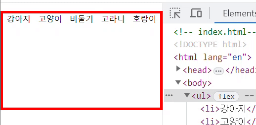 > 중앙에 flex item들이 배치되어있는걸 볼 수 있다.