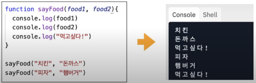 sayAnything("아자차카타파하") // 함수호출 ant안에 이러한 내용들을 담겠다.