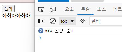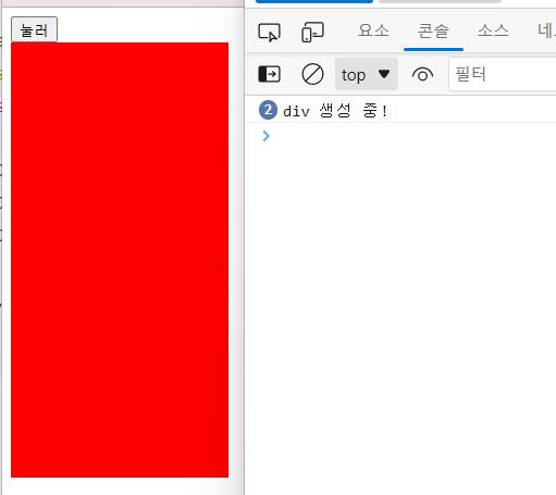 console.log("div 생성 중!") // 클릭시, 콘솔에 "div 생성 중!" 출력