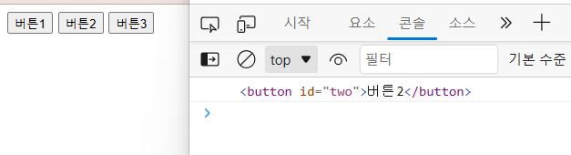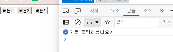그래서 btn2인 버튼2를 누르게 되면 콘솔에 다음과 같이 출력되는 것을 볼 수 있다.(1, 3은 아무런 결과를 출력하지 않음)
