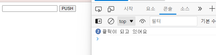 onclick로 클릭되었을 때 클릭의 수를 카운팅하는것으로 PUSH를 두 번 눌러서 클릭이 되고 있어요가 2번 출력됨