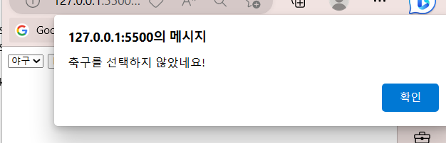 "축구를 선택하지 않았네요!" // 같지 않다면 "축구를 선택하지 않았네요!" 이 반환되어 result에 대입