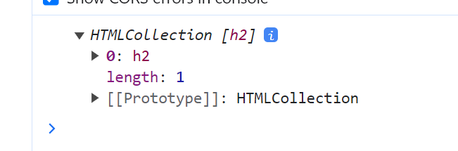 const tagName = document.getElementsByTagName("h2"); console.log(tagName);const tagName = document.getElementsByTagName("h2")[0]; console.log(tagName);const tagName = document.getElementsByTagName("h2")[1]; console.log(tagName);
