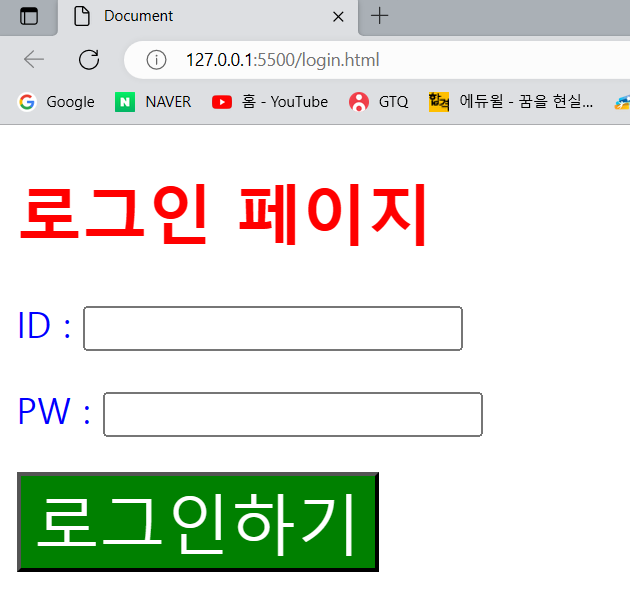<h1 class="mytitle">로그인 페이지</h1>