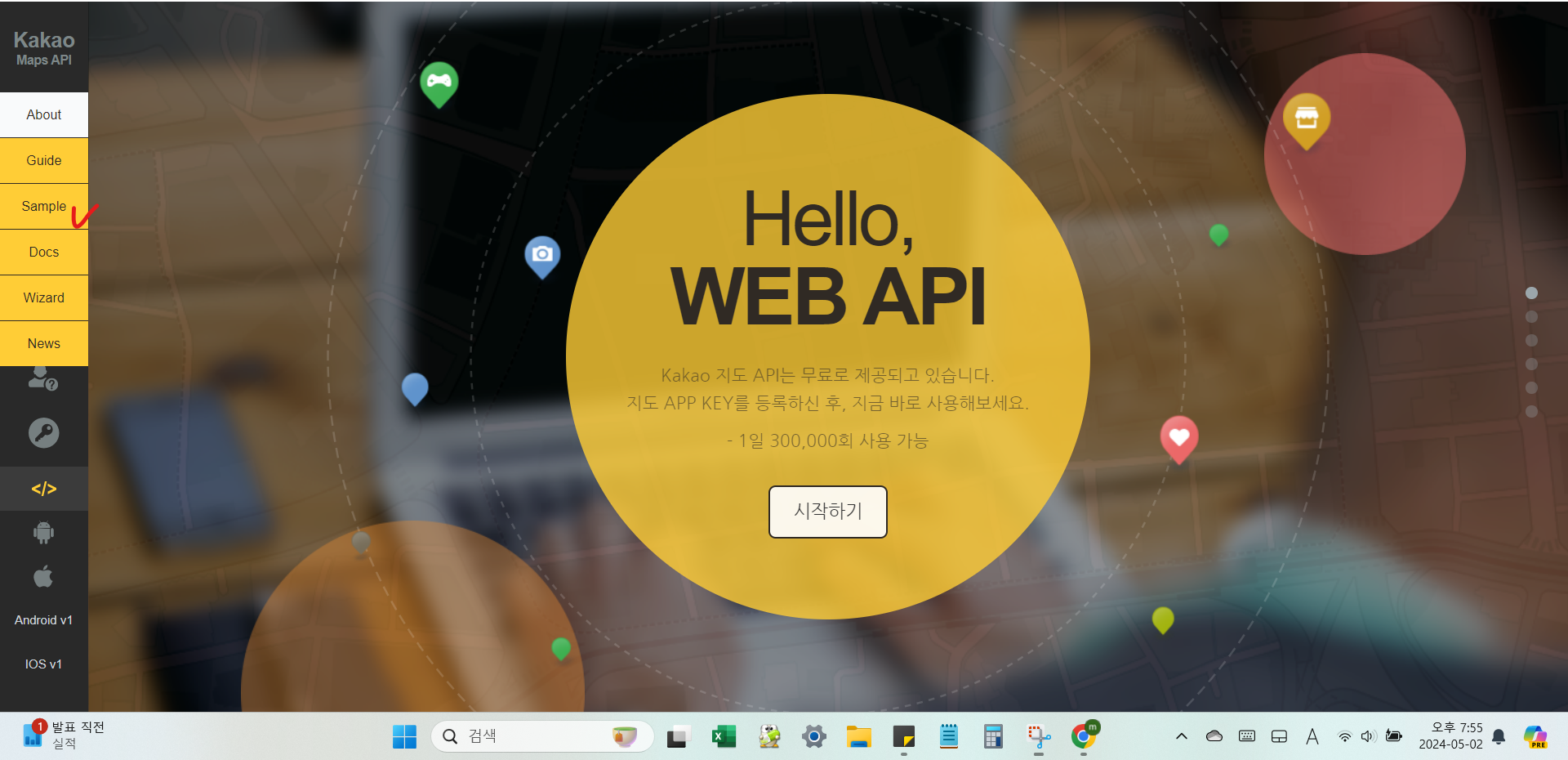 https://apis.map.kakao.com/로 이동하게 됨
