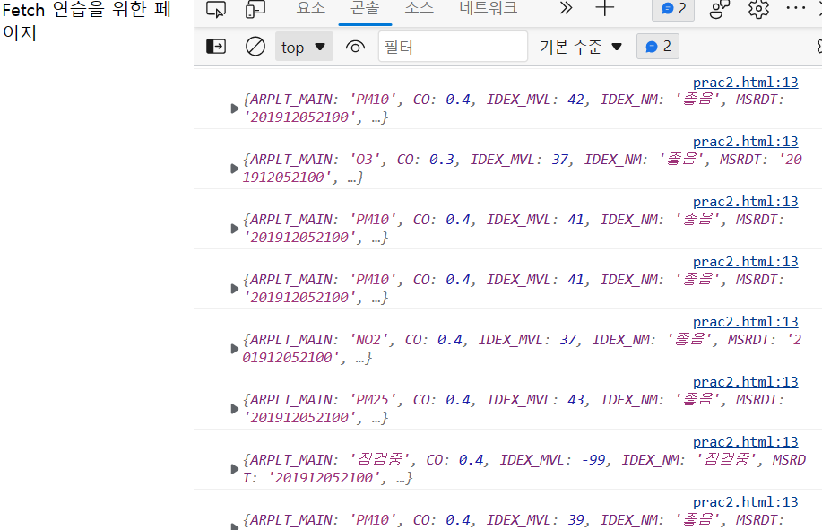 fetch("http://spartacodingclub.shop/sparta_api/seoulair").then(res => res.json()).then(data => {
