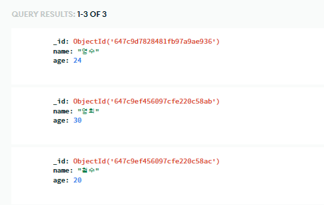 # 여러개 찾기 - 예시 ( _id 값은 제외하고 출력)